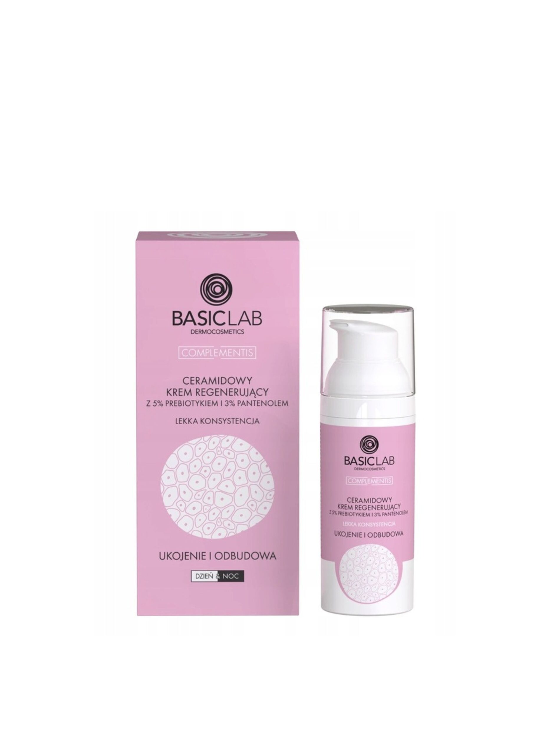 Lekki krem z ceramidami typu 3 i 6, 5% prebiotykiem, pantenolem i alantoiną intensywnie regeneruje, koi podrażnienia i wzmacnia barierę hydrolipidową skóry. Zapewnia długotrwałe nawilżenie, poprawia elastyczność i chroni przed działaniem czynników zewnętrznych. Szybko się wchłania, nie obciążając skóry, dzięki czemu doskonale sprawdza się w codziennej pielęgnacji oraz pod makijaż.