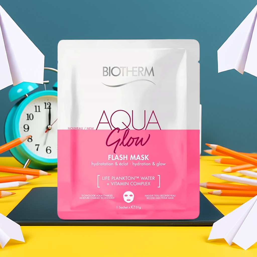 Biotherm Aqua Super Mask Glow to intensywnie nawilżająca i rozświetlająca maska w płachcie, stworzona dla skóry suchej, zmęczonej i pozbawionej blasku. Zawiera plankton termalny oraz kompleks witamin, które wspólnie regenerują, odżywiają i nadają cerze promienny wygląd. Doskonała jako szybki zabieg rewitalizujący po stresie, ekspozycji na zanieczyszczenia czy działaniu klimatyzacji.