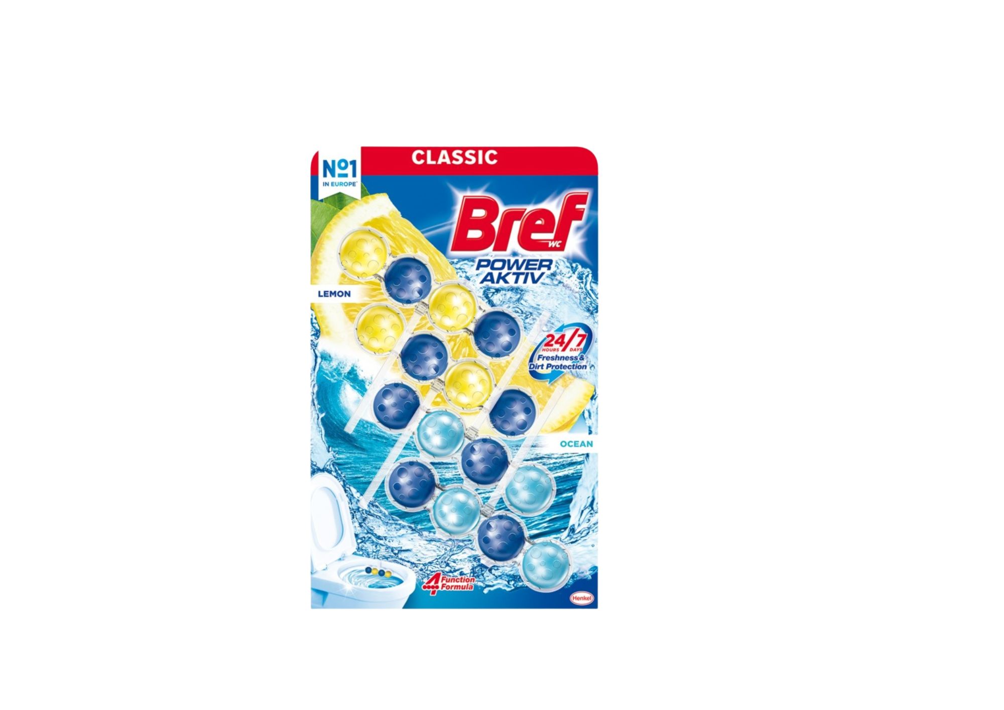 Bref, Power Activ, Morska Bryza i Soczysta Cytryna, kulki do WC, 4x50g