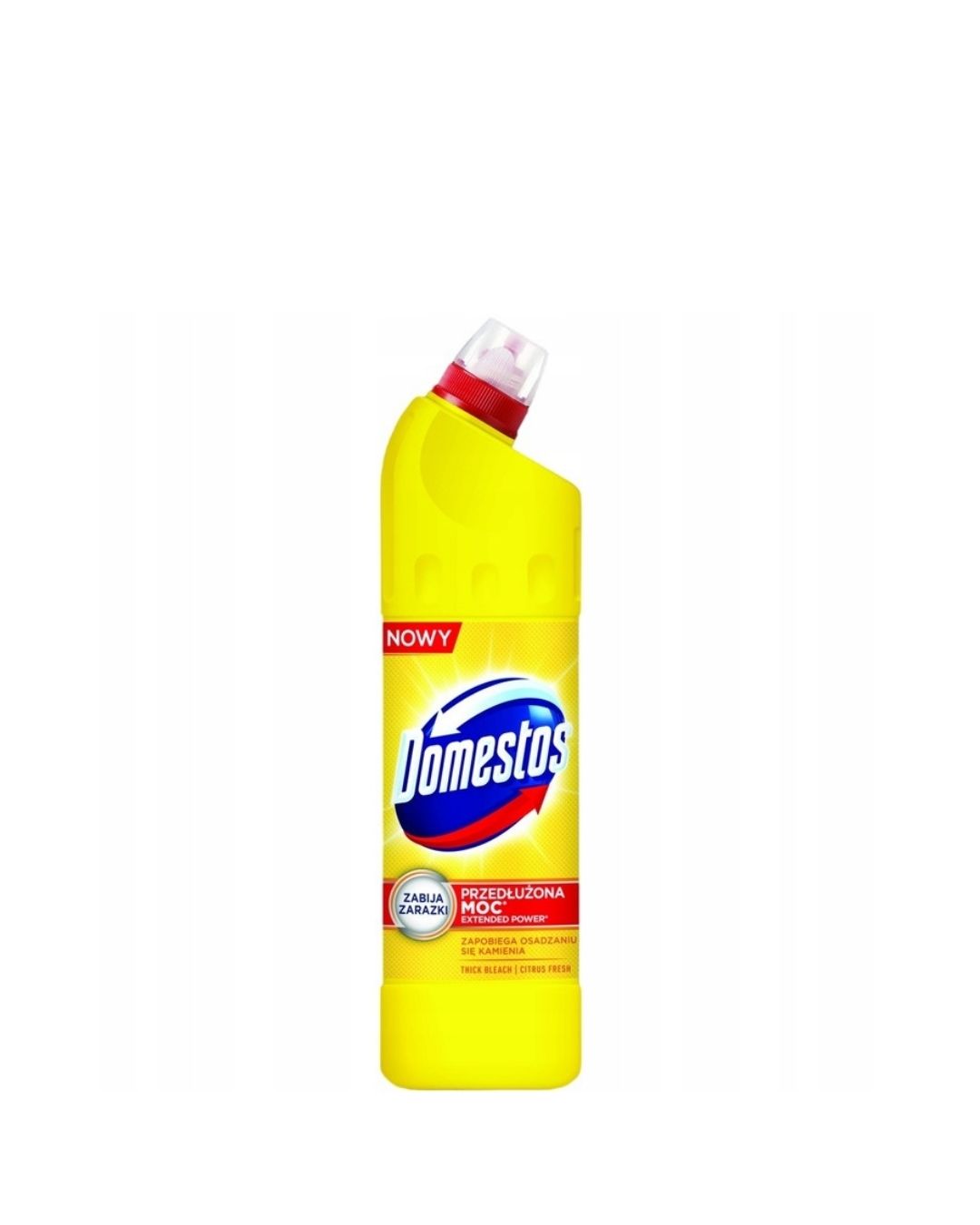 Domestos Przedłużona Moc to skuteczny płyn do czyszczenia i dezynfekcji, który pomaga utrzymać wysoki poziom higieny w toalecie oraz innych pomieszczeniach sanitarnych. Dzięki właściwościom bakteriobójczym, grzybobójczym, wirusobójczym i sporobójczym eliminuje do 99,9% zarazków*, zapewniając czystość i bezpieczeństwo.