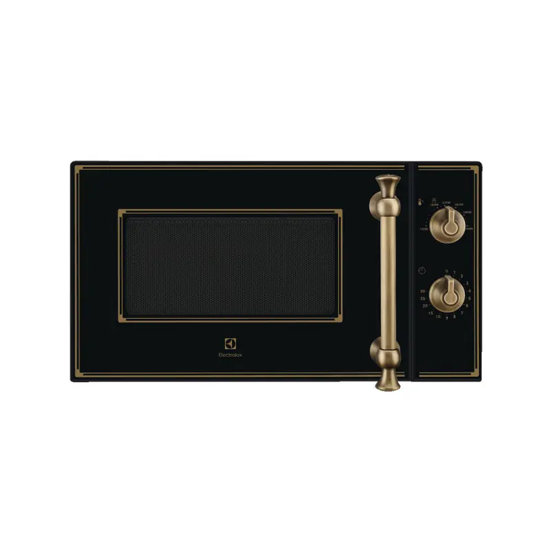 Wolnostojąca kuchenka mikrofalowa Electrolux o mocy 700 W to połączenie elegancji i funkcjonalności. Model w kolorze białym ze złotymi detalami wyróżnia się luksusowym designem, idealnie pasującym do kuchni w stylu Empire, klasycznym lub retro. Charakterystycznym elementem jest stylowa klamka na zawiasach.