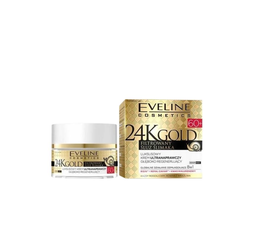 Eveline 60+ to luksusowy krem odżywiający do twarzy o silnym działaniu regenerującym i odmładzającym. Zaawansowana formuła oparta na filtrowanym śluzie ślimaka wspiera intensywną odbudowę skóry, poprawia jej elastyczność oraz pomaga widocznie spłycić zmarszczki. Krem zapewnia globalne działanie odmładzające 8 w 1 – liftinguje, ujędrnia, napina skórę, poprawia owal twarzy, wyrównuje koloryt, odżywia i wspomaga regenerację.