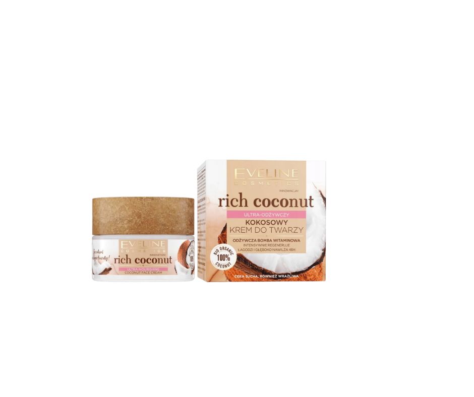 Eveline Rich Coconut Ultra-Odżywczy to krem do twarzy stworzony z myślą o skórze suchej i wrażliwej, która potrzebuje intensywnego nawilżenia, odżywienia oraz regeneracji. Formuła zawiera aż 97% składników pochodzenia naturalnego, dzięki czemu zapewnia skuteczną, a jednocześnie delikatną pielęgnację na co dzień.