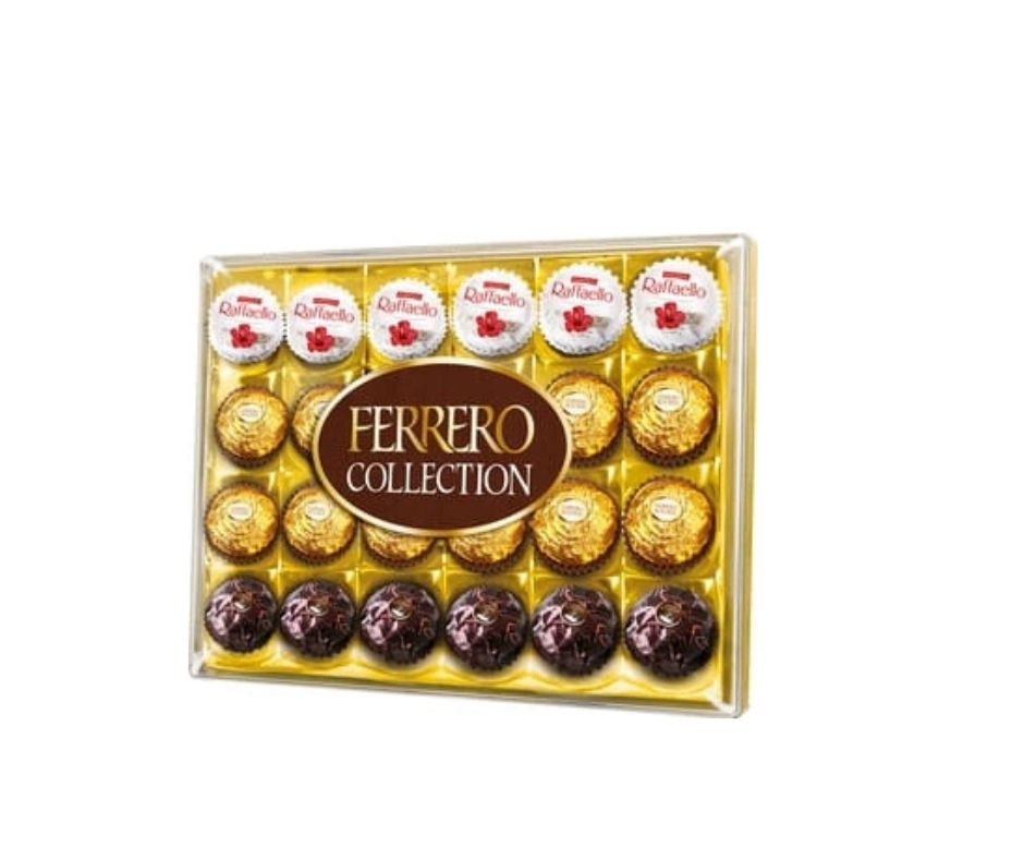 Ferrero Collection to harmonijne połączenie różnych pralin w jednym eleganckim zestawie — idealnym na prezent, spotkania rodzinne lub jako słodki dodatek do kawy.