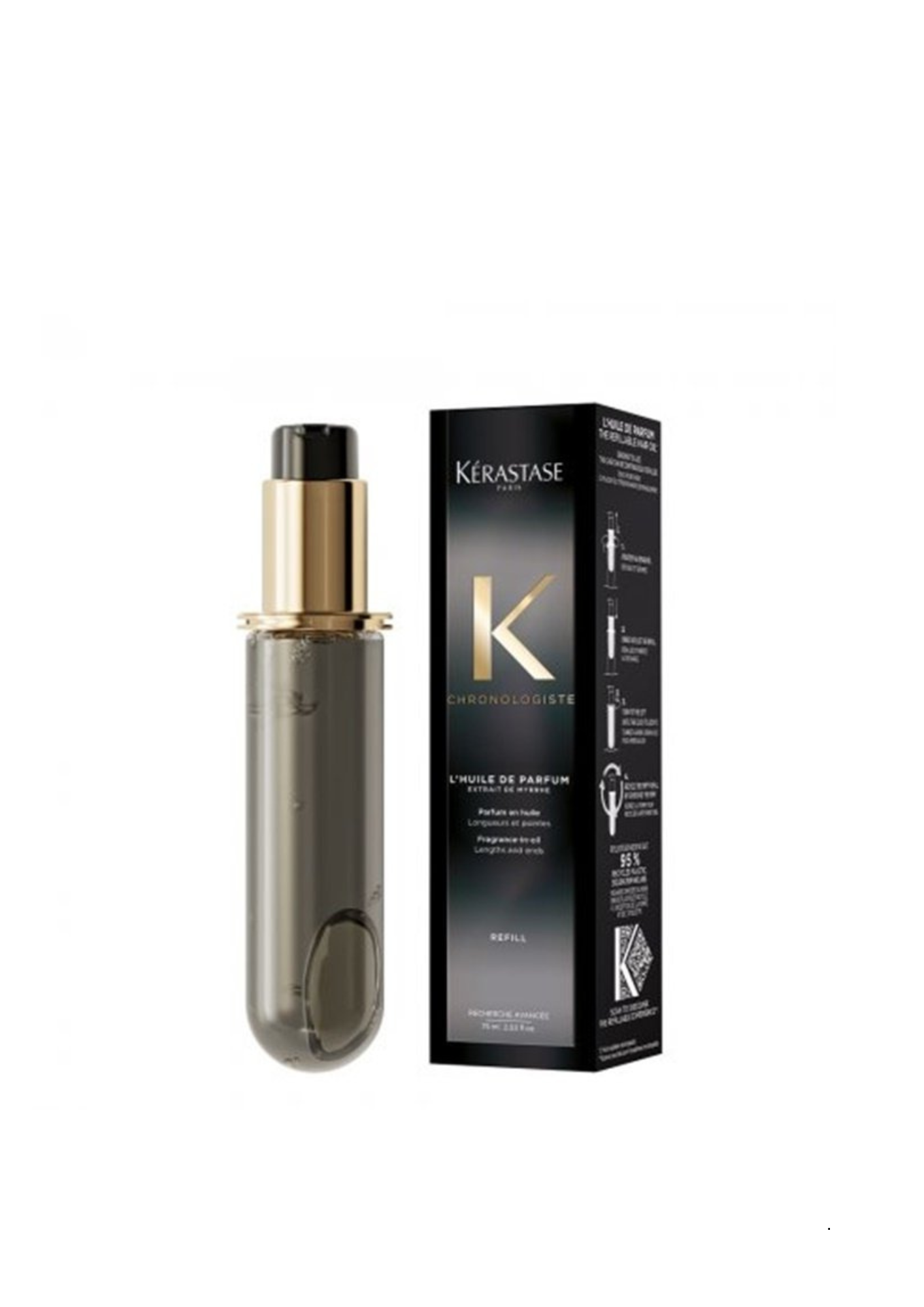 Spraw, by Twoje włosy stały się pachnącym magnesem na komplementy. Olejek perfumowany Kérastase Chronologiste L’huile de Parfum łączy w sobie pielęgnację włosów i przepiękny zapach. Ten luksusowy olejek z ekstraktem z mirry zapewnia włosom siłę, odżywienie, nawilżenie, a do tego nadaje im delikatny zapach, który utrzymuje się przez cały dzień.