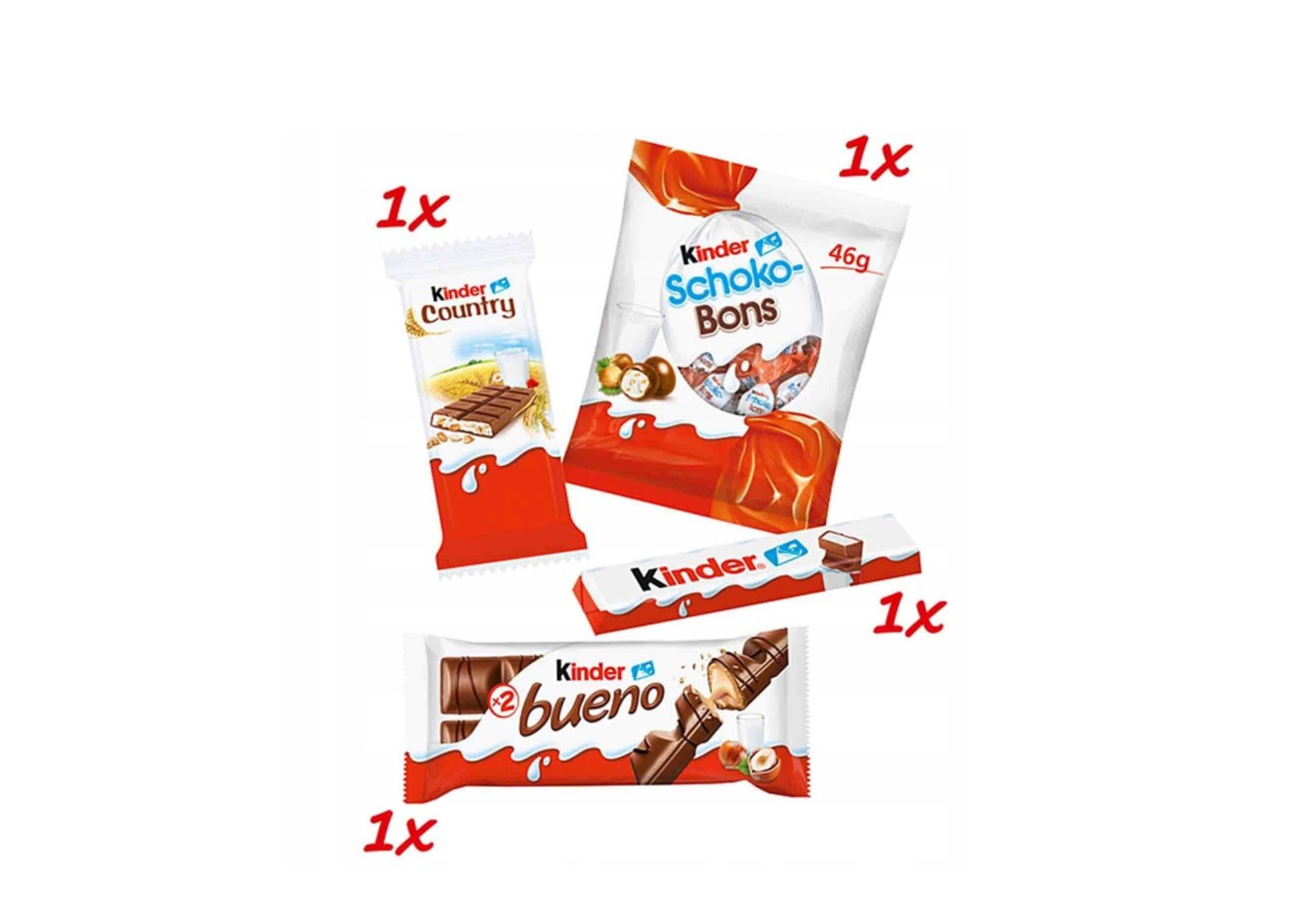W zestawie znajdują się popularne słodycze Kinder: