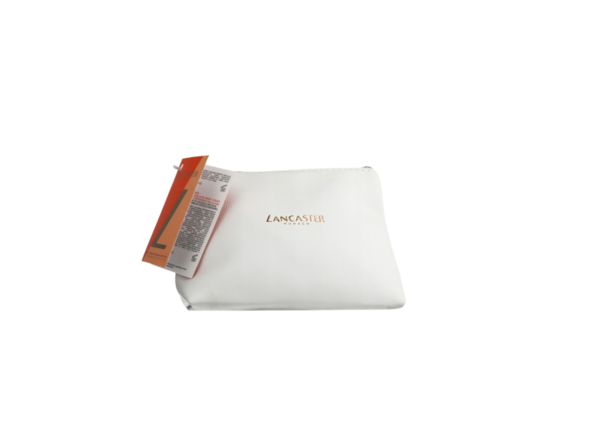 Stylowa kosmetyczka marki Lancaster, wykonana z wysokiej jakości materiału o subtelnej fakturze. Klasyczna biel w połączeniu ze złotym logo nadaje jej elegancki i ponadczasowy wygląd. Idealna do przechowywania kosmetyków zarówno w domu, jak i w podróży.