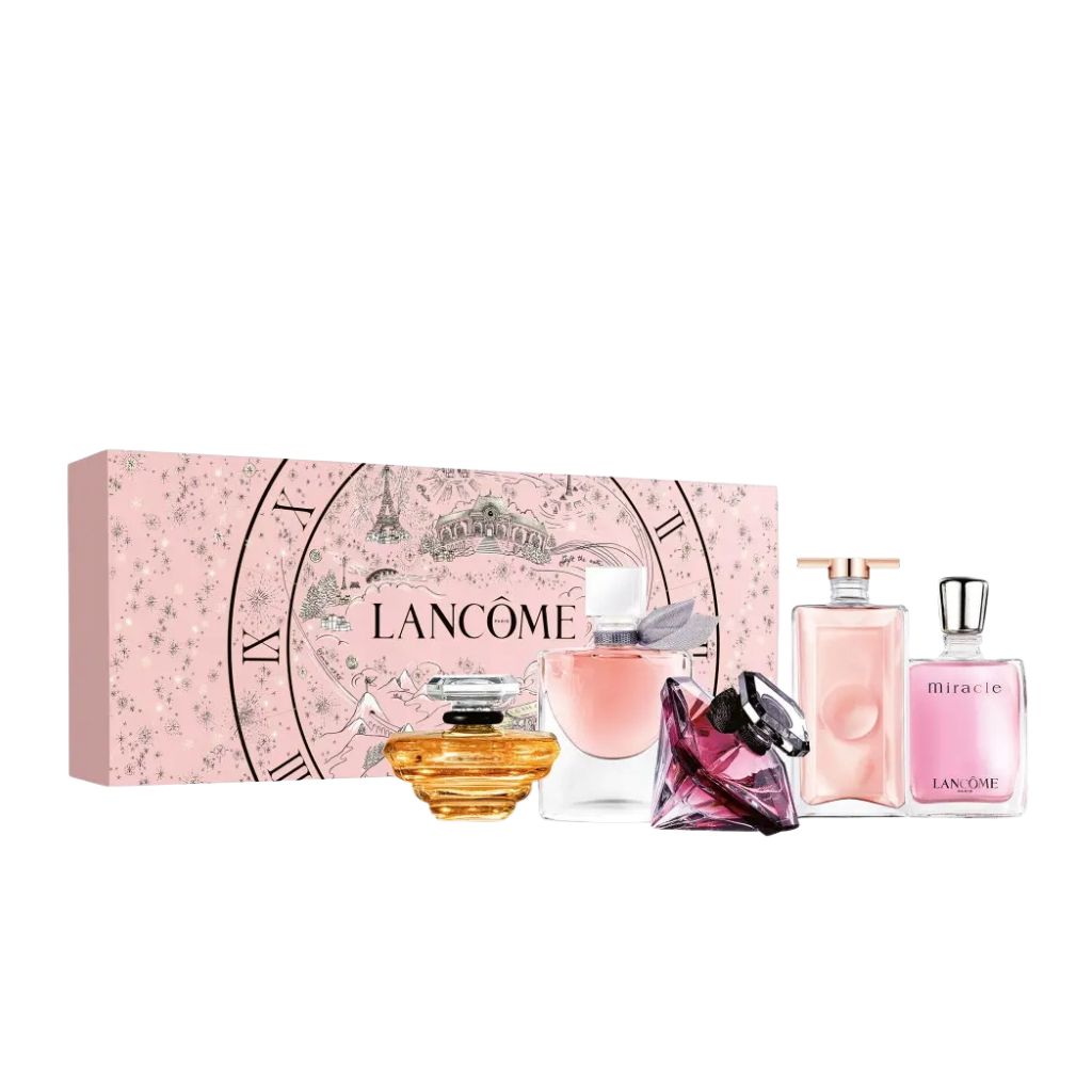 Podaruj sobie lub bliskiej osobie odrobinę francuskiego luksusu. Zestaw pięciu kultowych zapachów Lancôme w miniaturowych flakonikach to idealna okazja, by odkryć różnorodność najbardziej uwielbianych perfum tej marki. Każdy aromat to inna historia – od subtelnej świeżości, po zmysłową głębię i elegancką słodycz. Wyjątkowa świąteczna kolekcja, zaprojektowana w kultowym odcieniu różu Lancôme z ilustracjami artystki Safii Ouares, świętuje 90 lat magii marki i paryskiego szyku.