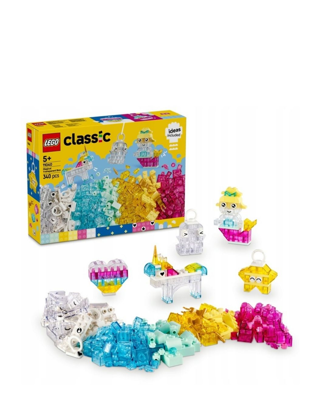 Przezroczyste elementy, klocki z oczami i buziami oraz specjalne części z wieszakami pozwalają nie tylko budować, ale także eksponować gotowe modele jako dekoracje. To zestaw, który inspiruje do długiej, twórczej zabawy — zarówno samodzielnej, jak i wspólnej z rodzicami.