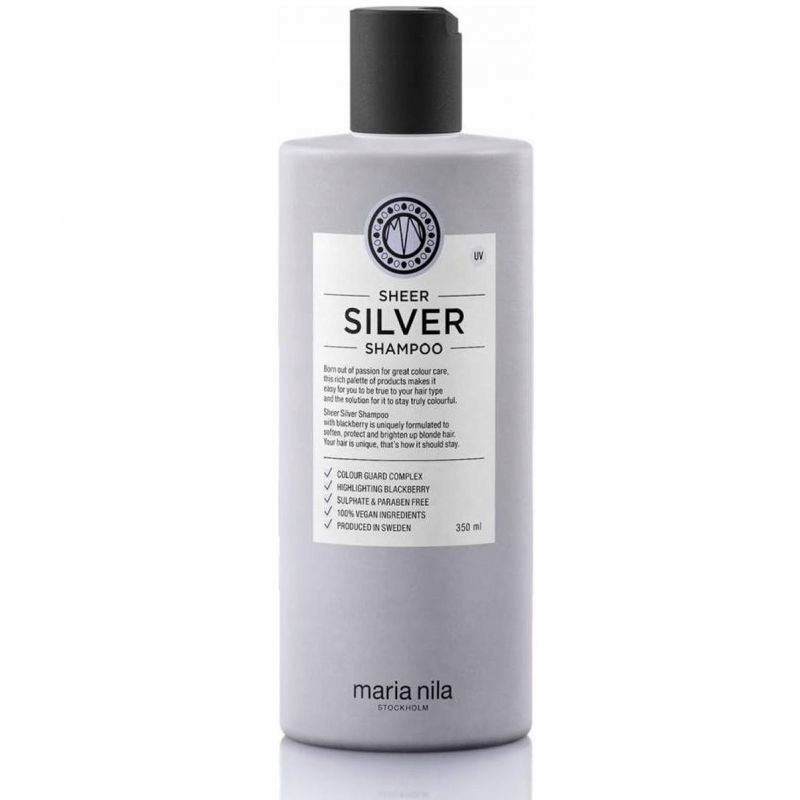 Szampon neutralizujący żółte tony Maria Nila Sheer Silver nada Twoim farbowanym blond włosom olśniewający blask i wspaniały odcień platyny jak od fryzjera.