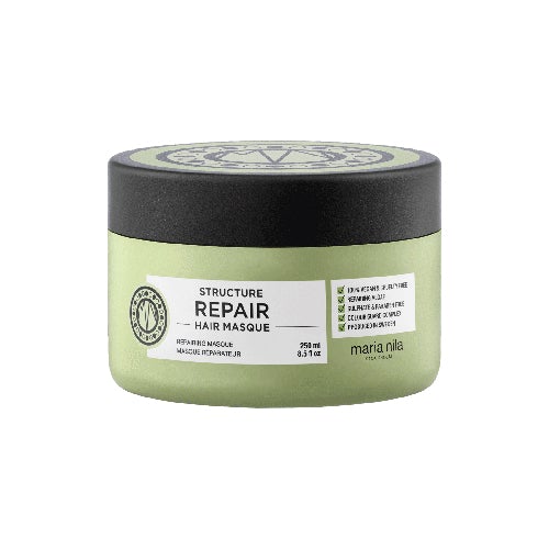 Dołącz do regularnej pielęgnacji intensywnie nawilżającą maskę Maria Nila Structure Repair. Przywróci suchym, zniszczonym i chemicznie uszkodzonym włosom utraconą siłę i zdrowie. Ekstrakt z morskich wodorostów skutecznie odżywia i wzmacnia włókna włosowe i nadaje im promienny blask.