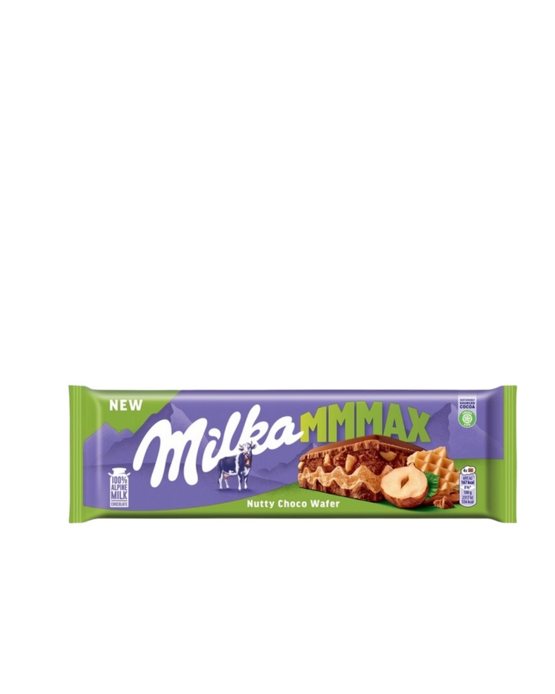 Milka Nutty Choco Wafer to wyjątkowe połączenie delikatnej mlecznej czekolady alpejskiej z chrupiącym wafelkiem oraz kawałkami orzechów laskowych. Ta harmonijna kompozycja smaków i tekstur sprawia, że każda kostka dostarcza przyjemności zarówno miłośnikom klasycznej czekolady, jak i chrupiących dodatków. Udoskonalona receptura czekolady Milka zawiera więcej kakao, dzięki czemu smak jest bardziej wyrazisty, a słodycz lepiej zbalansowana. Efektem jest jeszcze delikatniejsza i bardziej kremowa czekolada. Zaokrąglone kostki czekolady sprawiają, że degustacja staje się jeszcze przyjemniejsza. Charakterystyczna krówka Lila na jednej z kostek to rozpoznawalny symbol jakości i tradycji marki Milka. Czekolada Milka powstaje z wysokiej jakości składników, w tym mleka alpejskiego, które nadaje jej wyjątkową kremowość i łagodny smak.