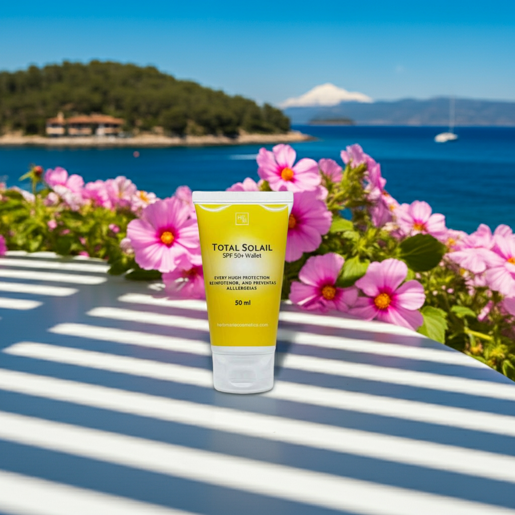 Theo Marvee Solantis Total Solail SPF 50+ to luksusowy krem ochronny, który łączy wysoką ochronę przeciwsłoneczną z intensywną pielęgnacją anti-aging. Przeznaczony do codziennego stosowania, idealny również jako baza pod makijaż.